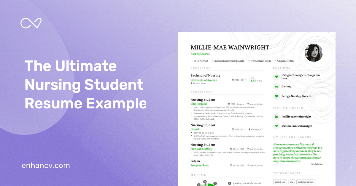 A nursing resume is a document highlighting your nursing skills, formal education, and relevant experience. The resume should include specific examples of experiences this resume section is a good opportunity to highlight specific skills relevant for a nurse job. Use our nursing resume example to help land more interviews.